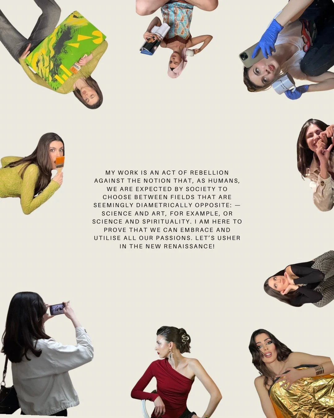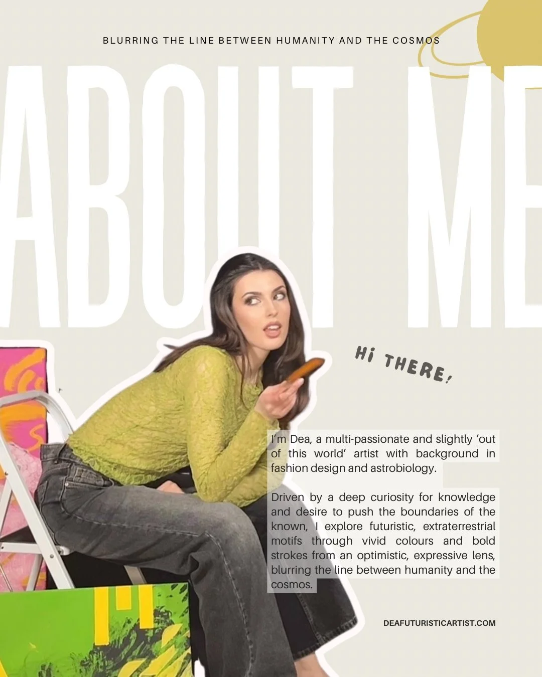 I am a multi-passionate painter with background in fashion design and astrobiology, driven by a deep curiosity for knowledge and desire to push the boundaries of the known.