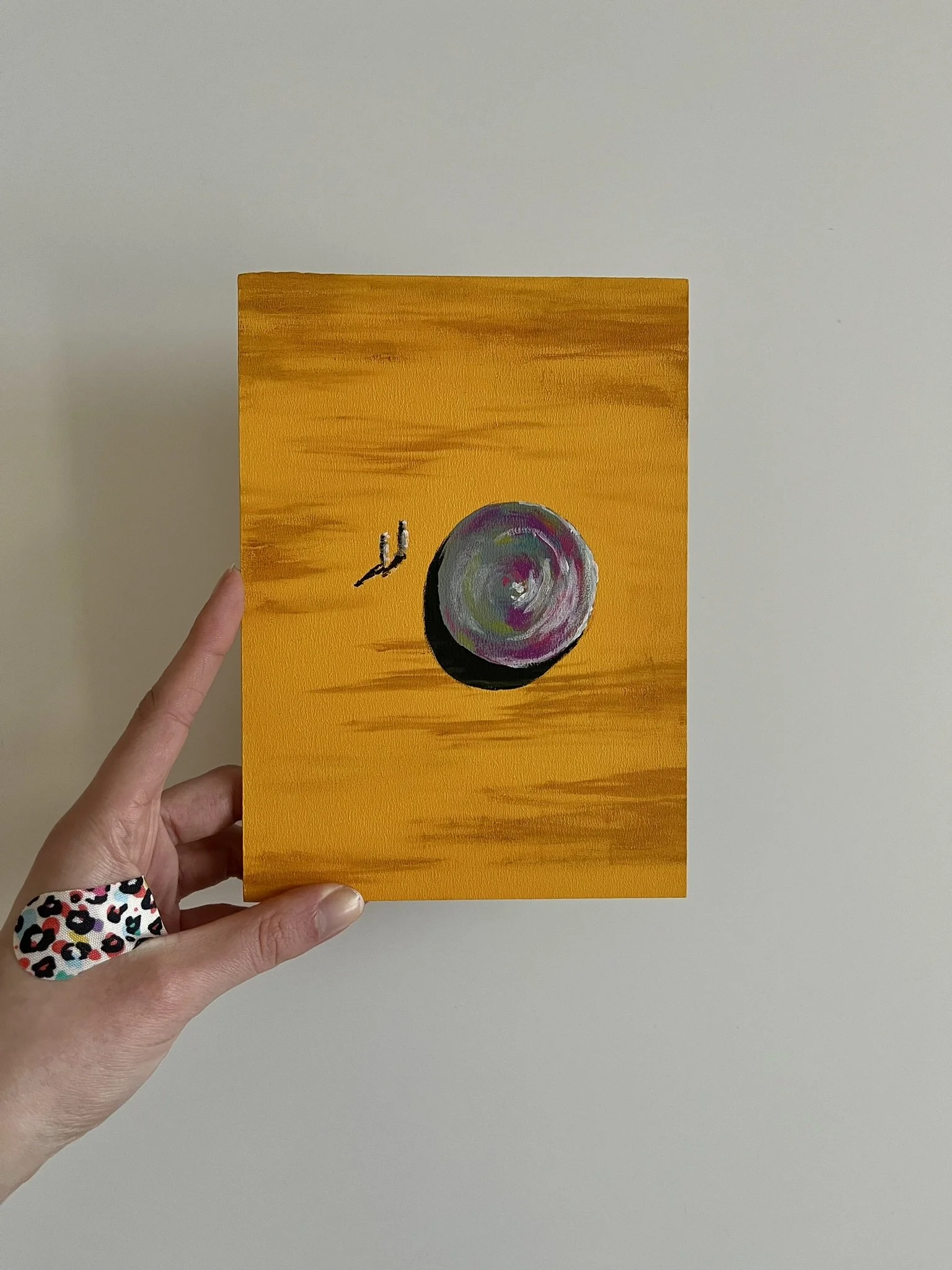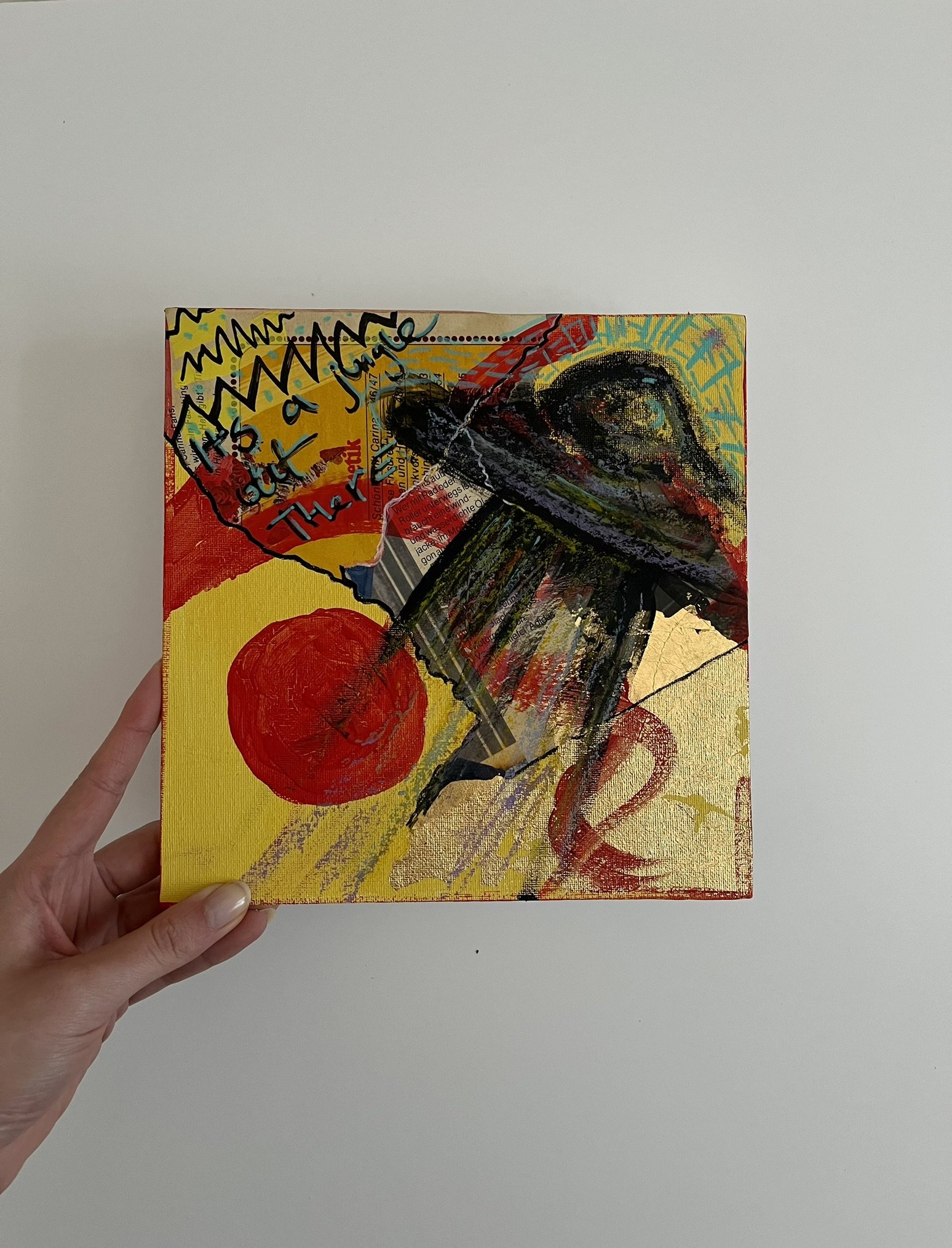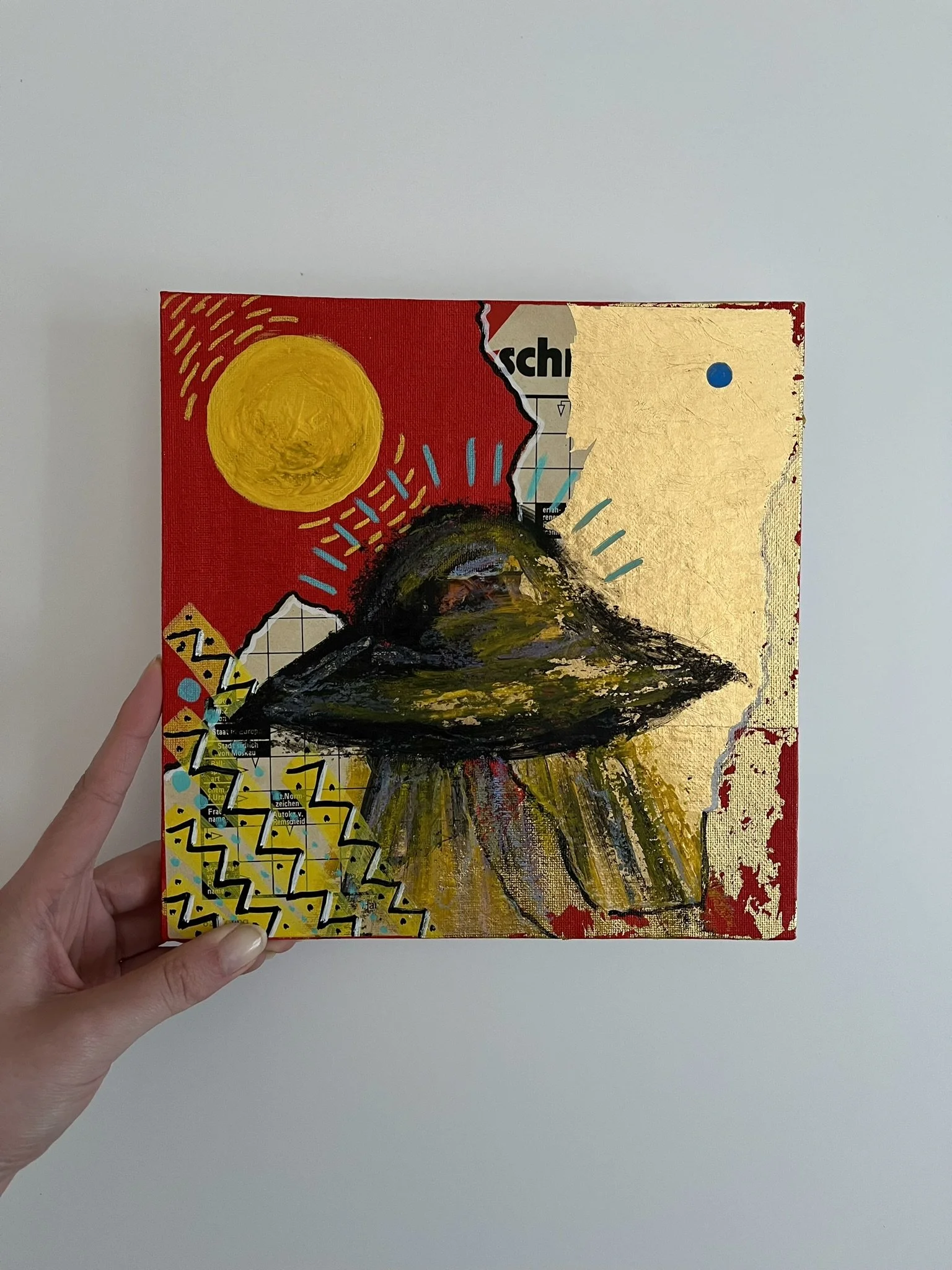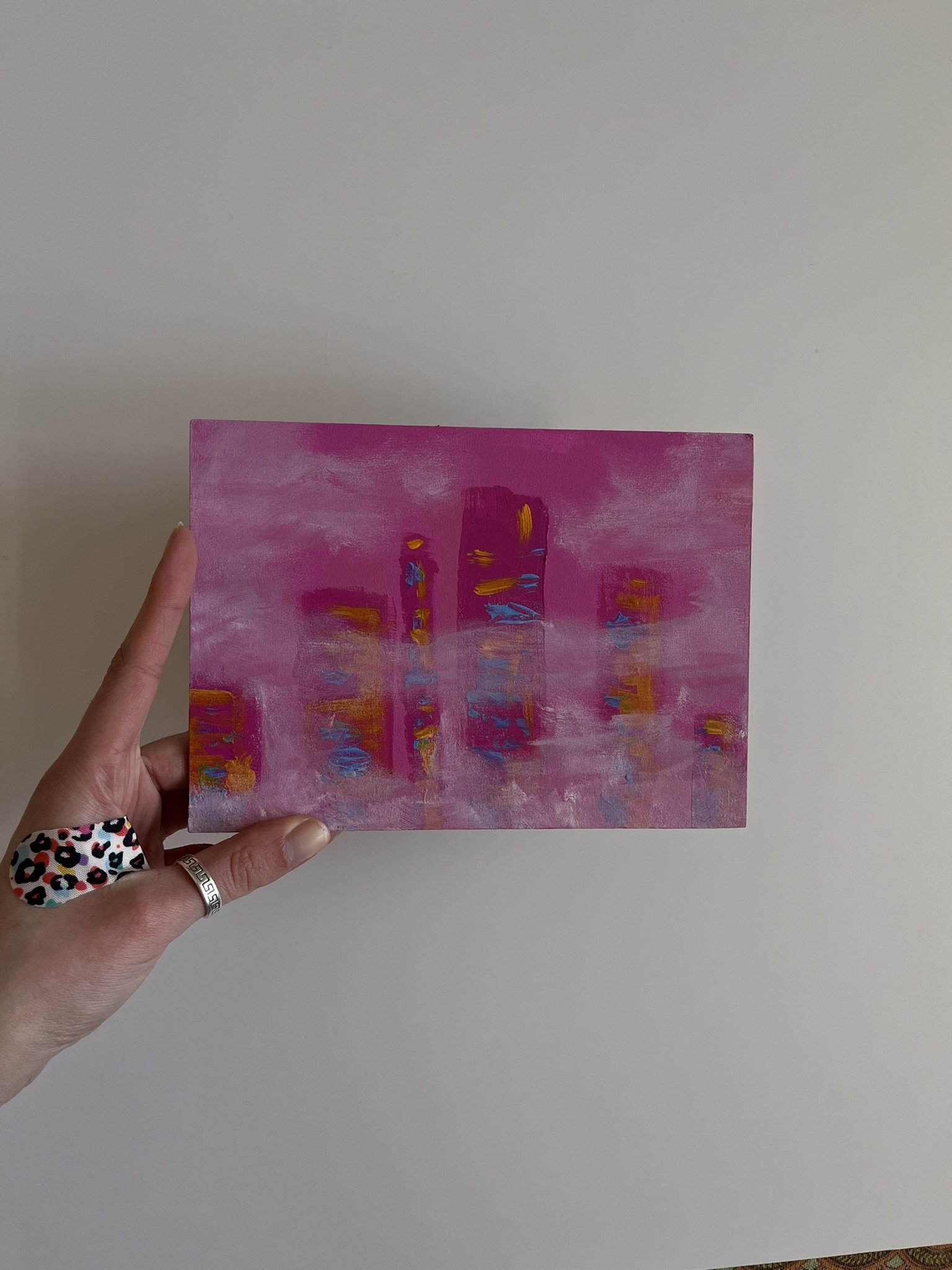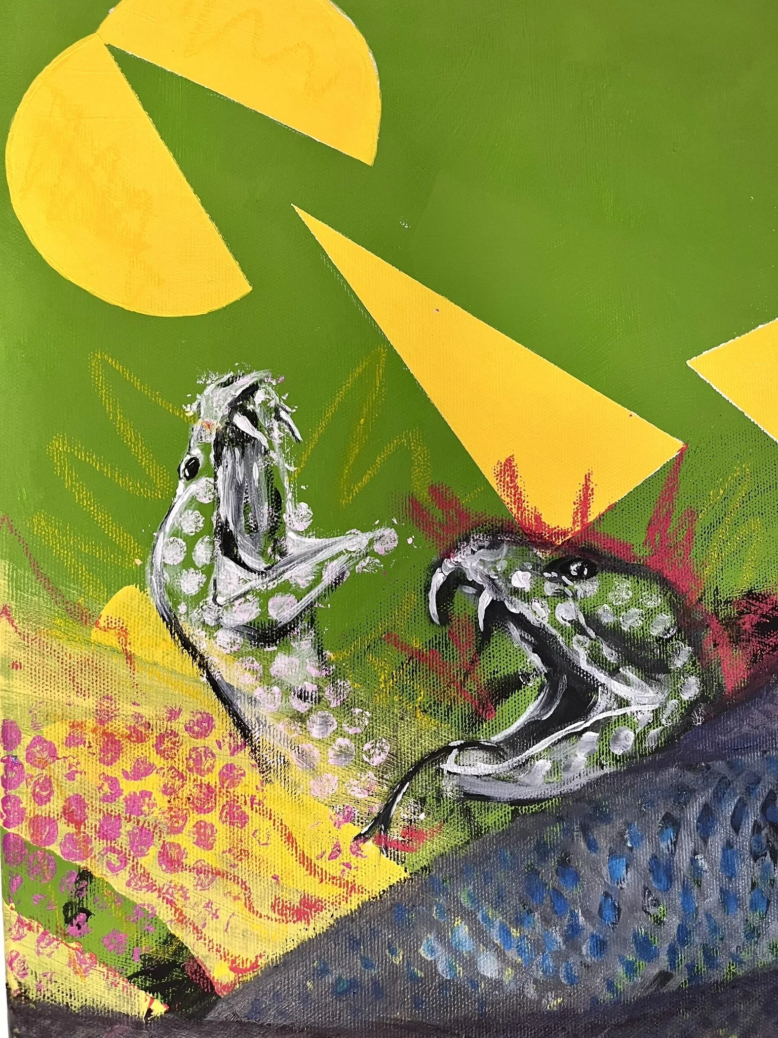 I mainly use oils and acrylics, alongside with pastels, sprays, foils and structured pastes to create colour rich and saturated pieces