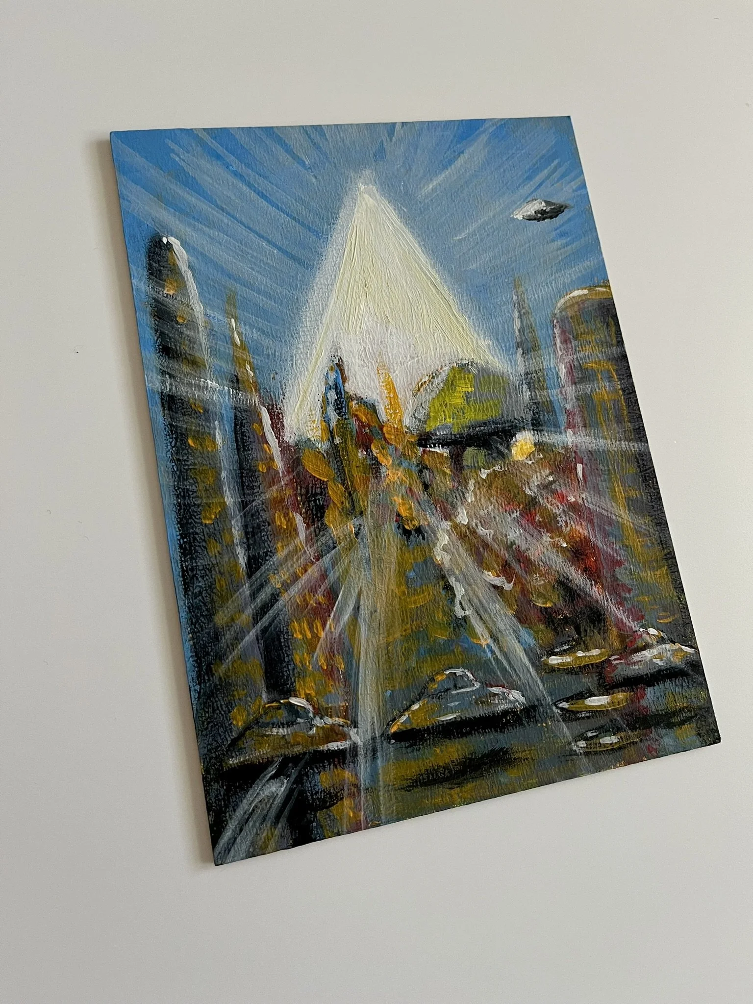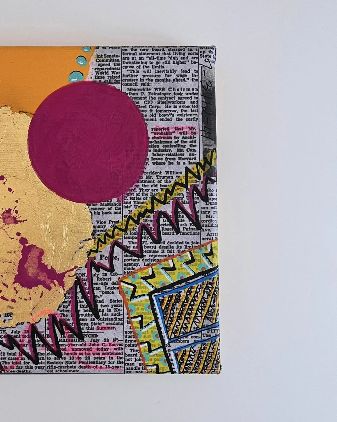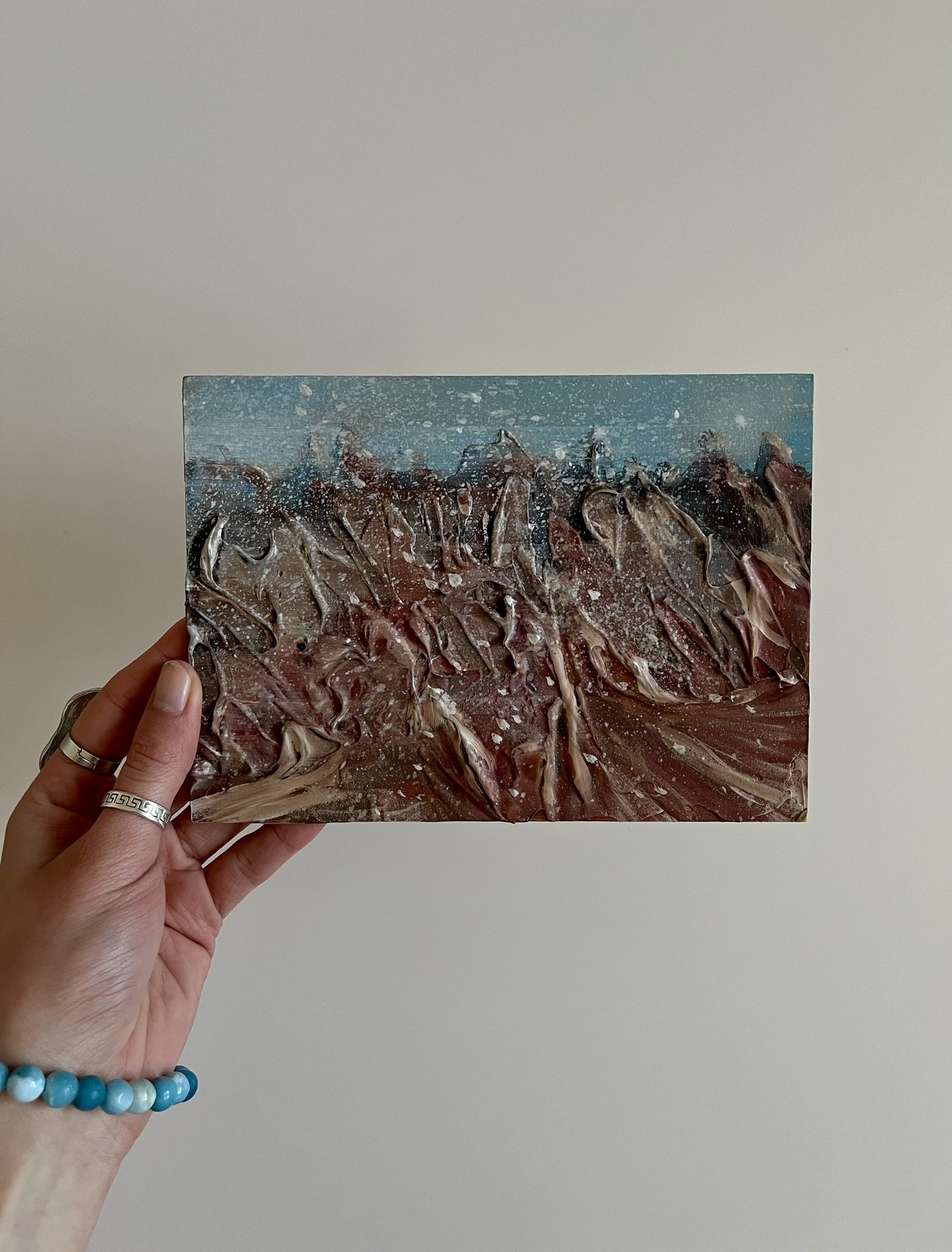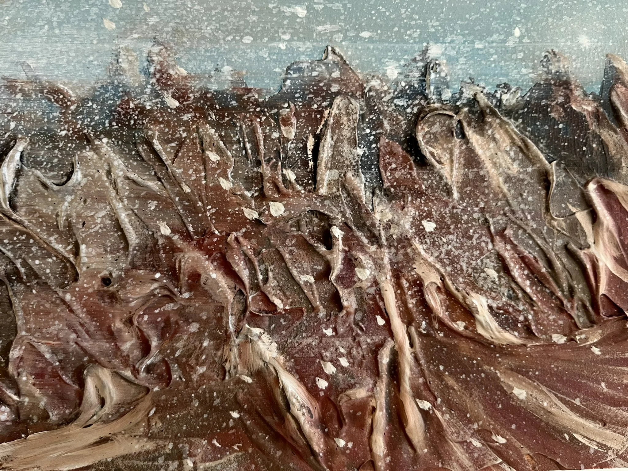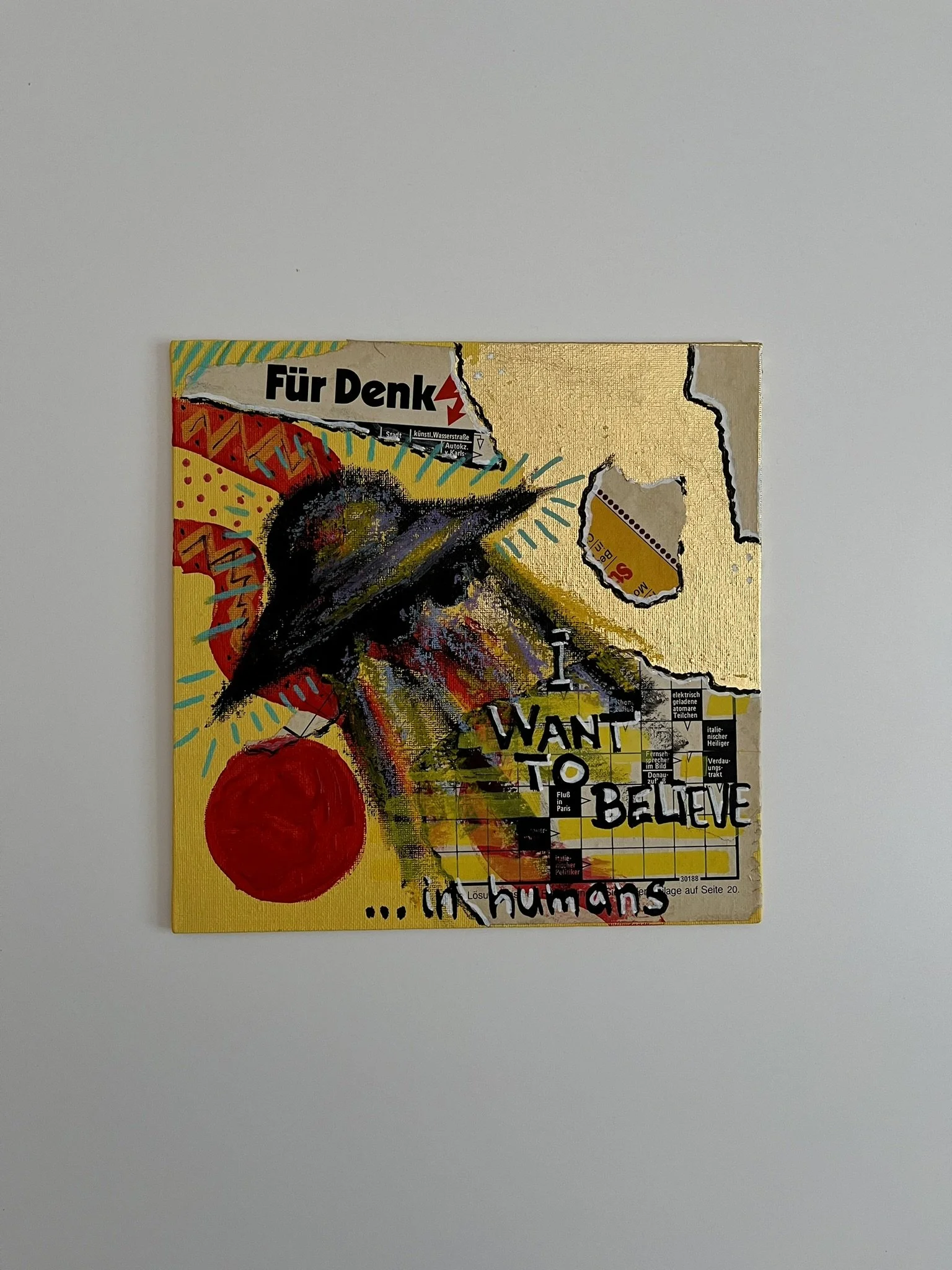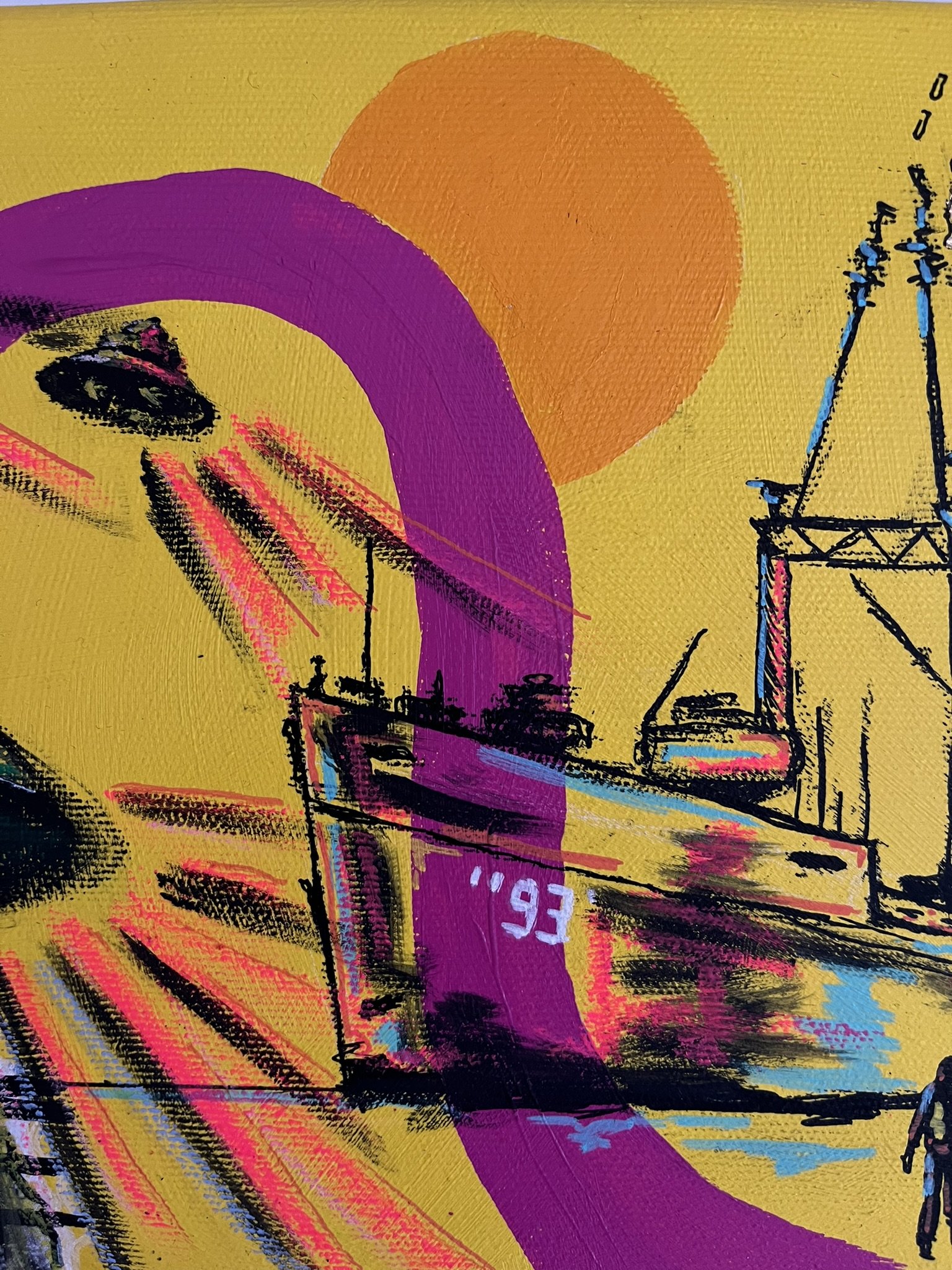 I mainly use oils and acrylics, alongside with pastels, sprays, foils and structured pastes to create colour rich and saturated pieces