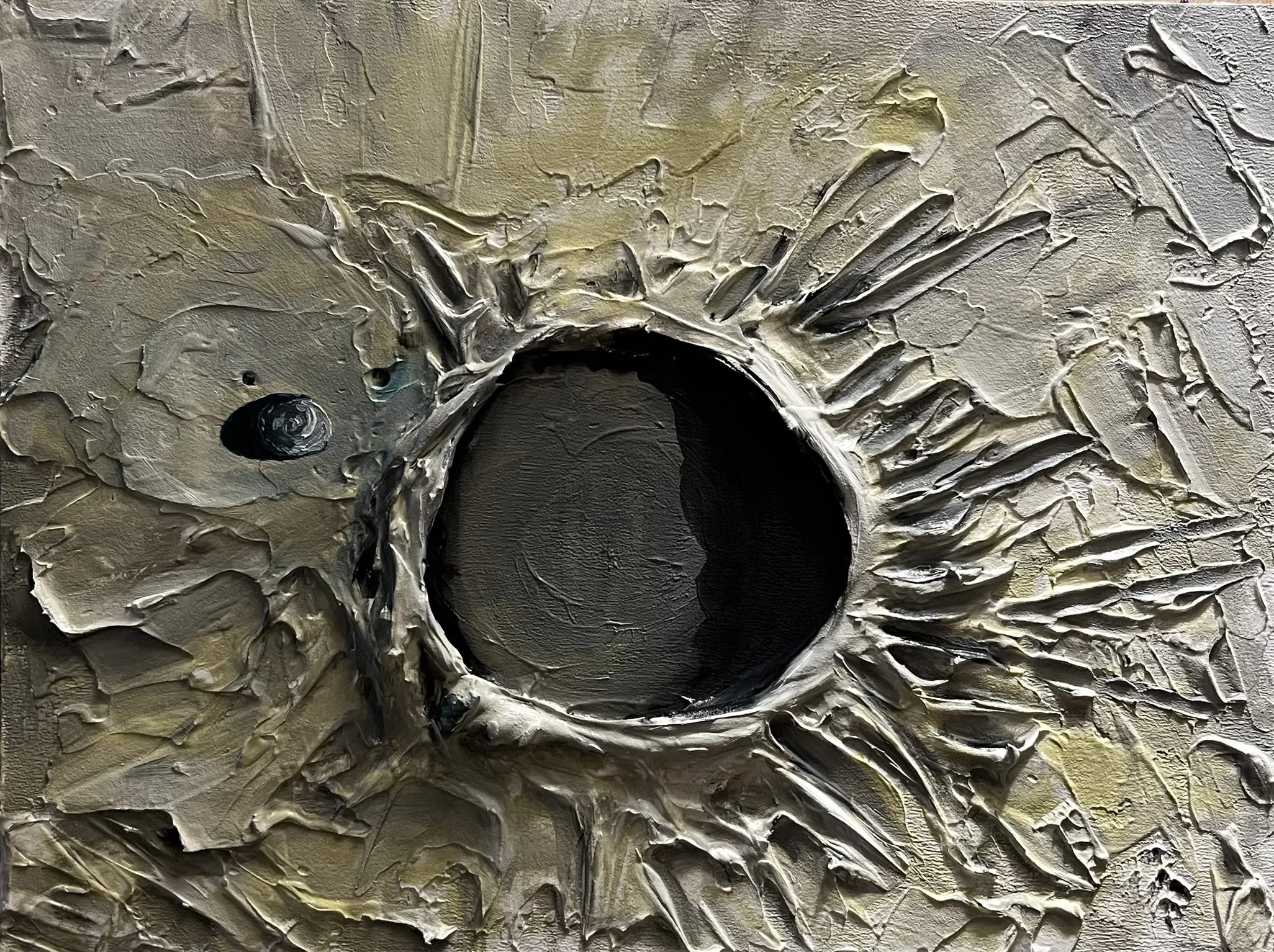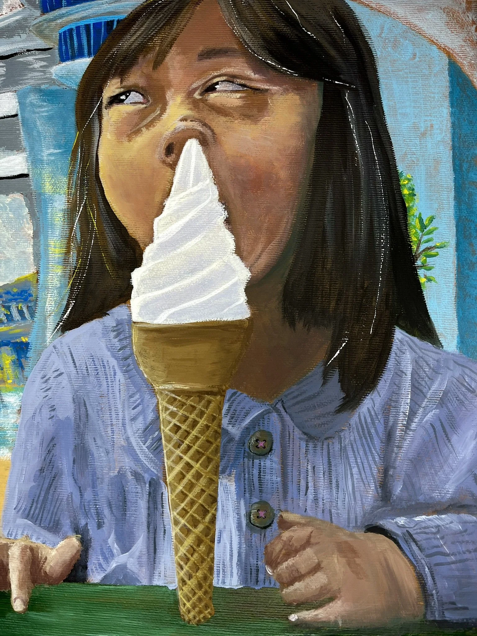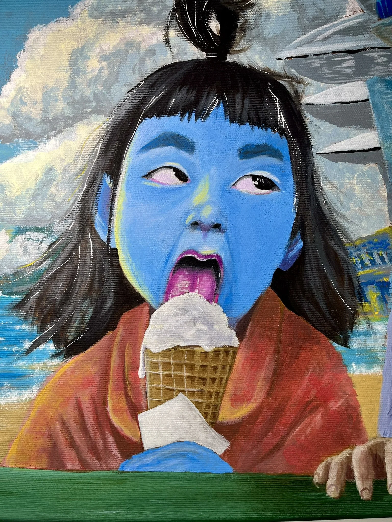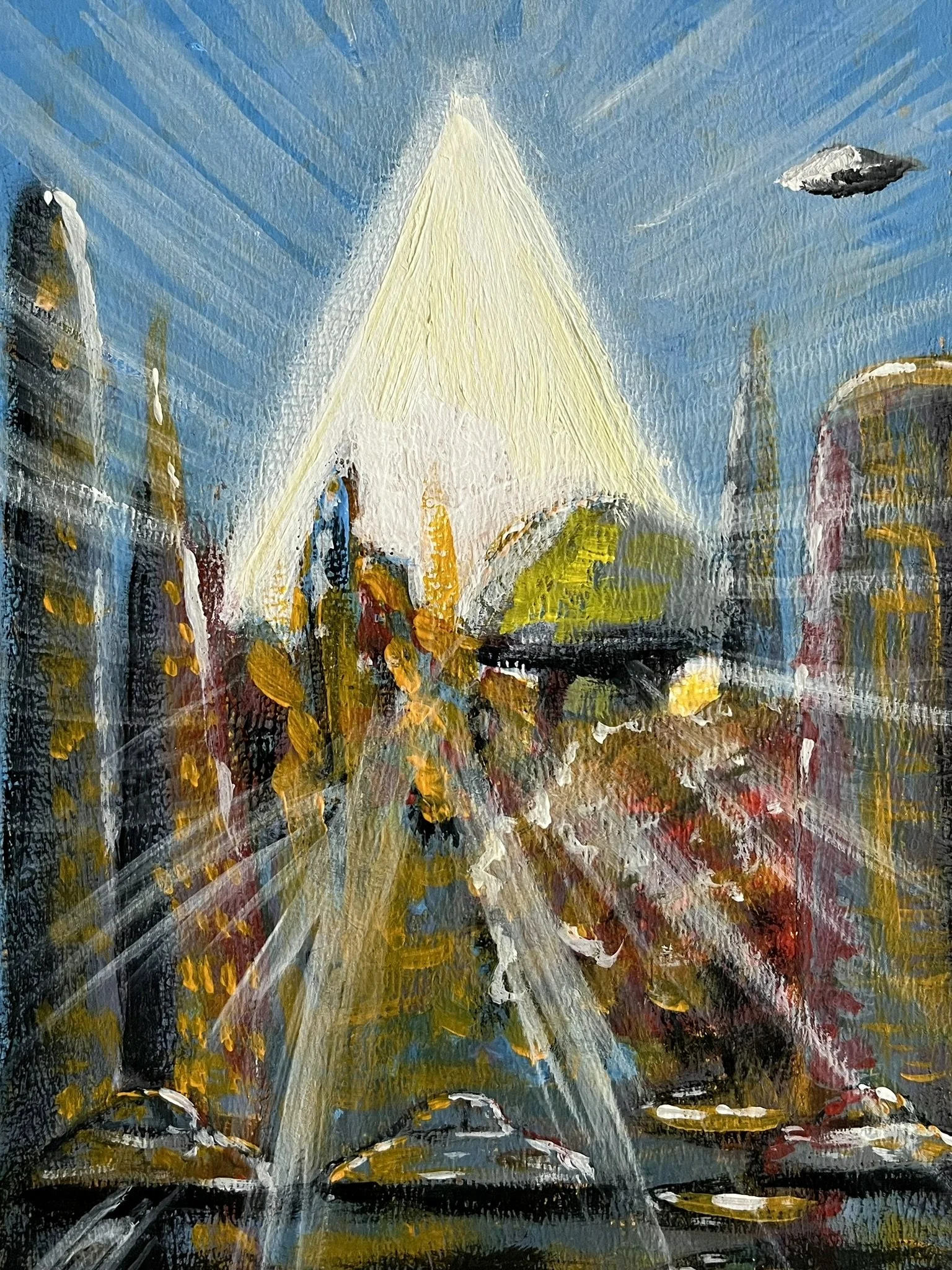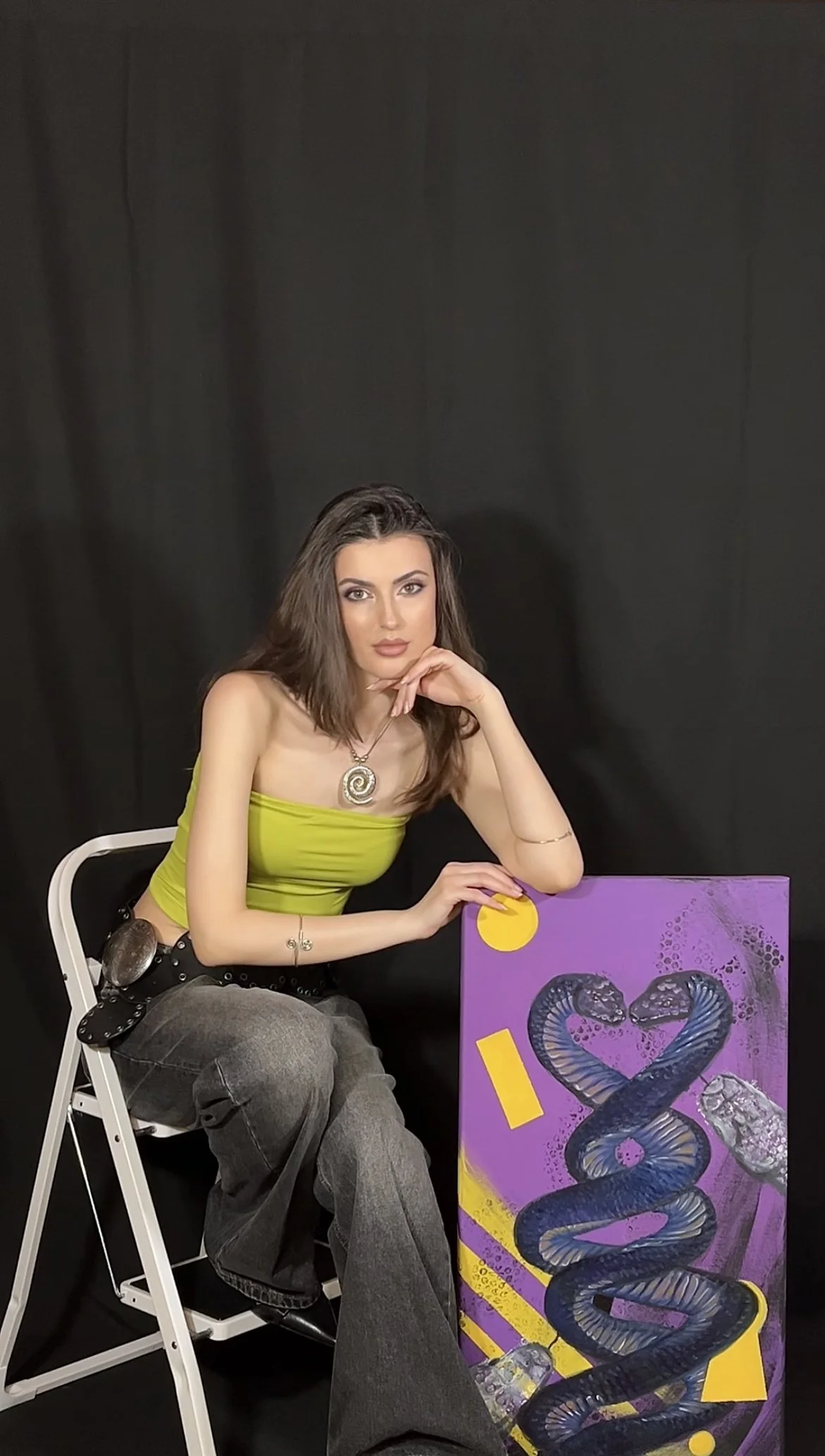 I mainly use oils and acrylics, alongside with pastels, sprays, foils and structured pastes to create colour rich and saturated pieces